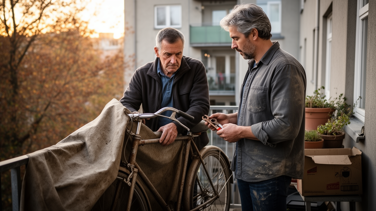 Балкон был застеклён, но холодный, с коробками и банками. Велосипед стоял у стены, накрытый старой простынёй. Отец снял простыню, как будто открывал что-то важное, и осторожно провёл ладонью по раме.