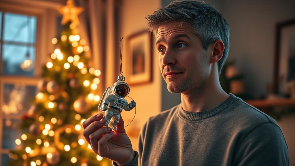 Сергей долго сидел, глядя на игрушку. Потом встал, пошёл в комнату. У ёлки постоял, прикидывая, куда его повесить. В итоге поднял руку и повесил космонавта почти на самый верх, рядом со звездой. Отступил, посмотрел. Игрушка чуть покачивалась, ловя свет гирлянды.