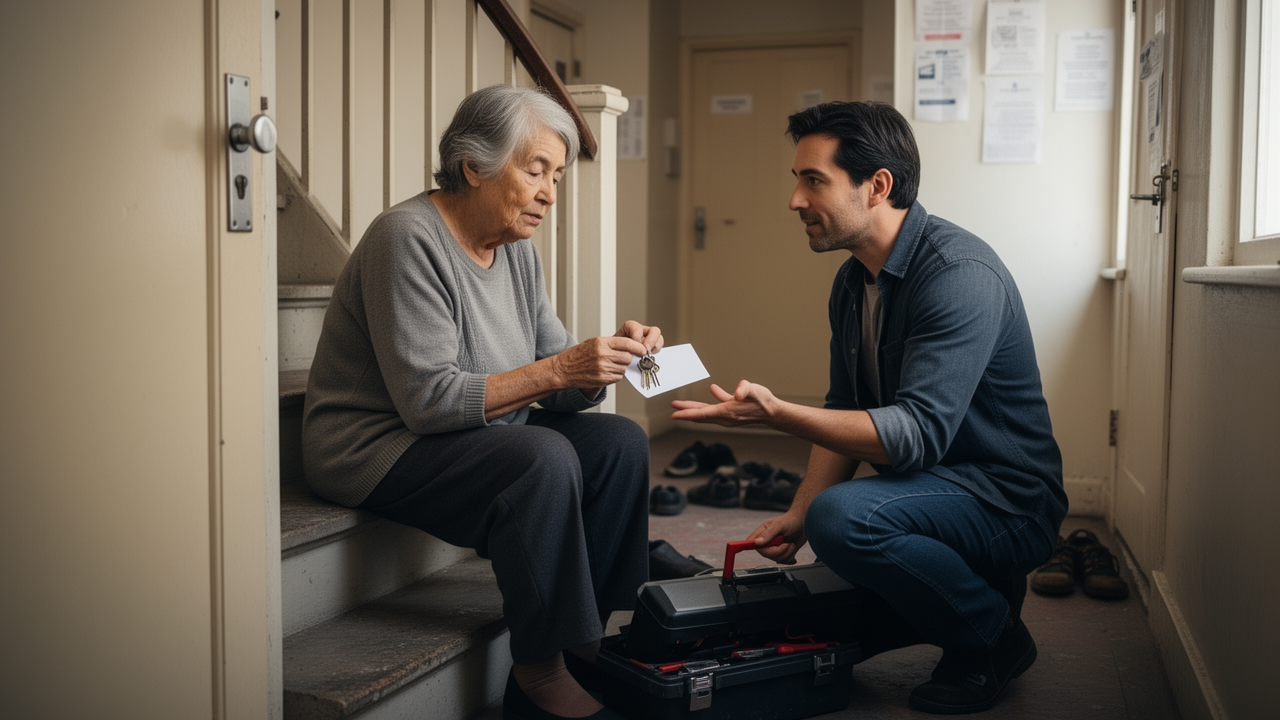 На следующий день она позвонила мастеру, которого рекомендовал Сергей. Мастер пришёл вечером, снял старый замок, показал изношенную деталь, поставил новый. Нина Сергеевна заплатила, получила два ключа и положила один в коробочку на верхней полке шкафа, подписав маркером «запасной». Это было её маленькое признание: да, бывает, что не справляешься.