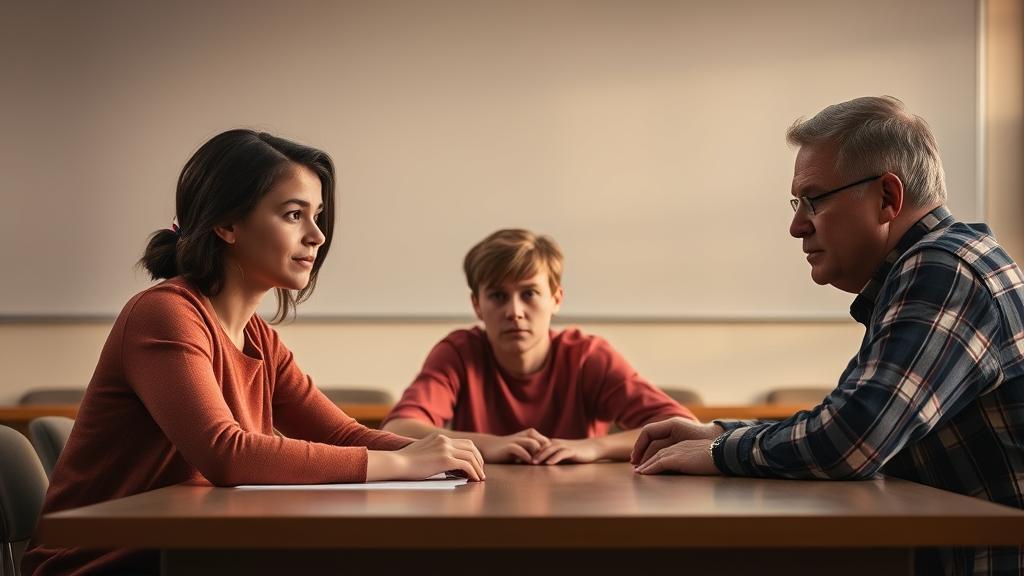 — Я, как представитель администрации, — начала Ольга Петровна, — вижу, что у нас накопилось несколько инцидентов с участием Артёма. Я переживаю, что мы реагировали скорее формально, чем по сути. Я благодарна, что вы пришли, потому что это шанс выстроить понятный порядок взаимодействия.